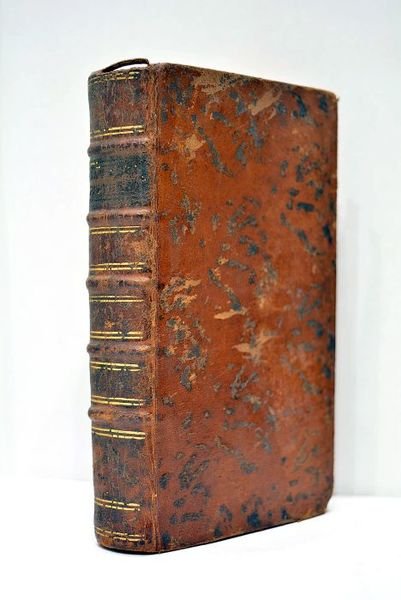 in-8. 2 feuillets. 500 pages. (16x9,5cm). Pleine basane de l'époque. Dos à nerfs fileté. Pièce de titre manquante. Tranches mouchetées. Reliure frottée. Coins émoussés. Acciedent à la coiffe supérieure. Taches d'encre. Quelques rousseurs. Quelques feuillets brunis. Très rare édition de Perpignan. Petit et Grand Catéchismes. La seconde partie du Grand Catéchisme est consacrée aux dogmes de la religion, avec des chapitres traitant de la pénitence publique, de l'absolution solemnelle et des cas réservés, de l'excommunication et des péchés véniels, des indulgences et du purgatoire, de l'extrême-onction, etc. Fleury était le confesseur de Louis XIV. Voltaire a dit de lui qu'il: "vécut à la cour dans la solitude et dans le travail. Son Histoire de l’Église est la meilleure qu’on ait jamais faite, et les discours préliminaires sont fort au-dessus de l’histoire. Ils sont presque d’un philosophe, mais l’histoire n’en est pas". Assez bon exemplaire de cette rare édition provinciale.