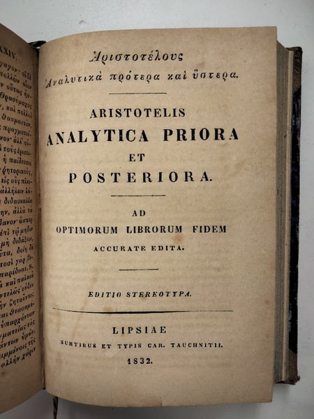 In 24°, m. pelle, pp. 336. UNITO: Analytica priora et posteriora - 1832 - pp. 232. Lettere al d. in o.