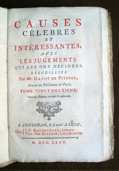 Causes celebres et interessantes avec les jugemens qui les ont decidées. Tome XXII.