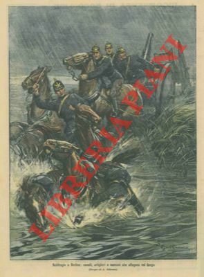 Cavalli, artiglieri e cannoni affogano nel fango, durante un nubifragio, a Berlino.