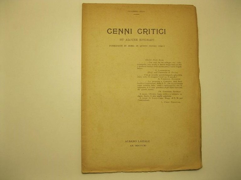 Cenni critici su alcune epigrafi, pubblicate in Roma in questi ultimi tempi