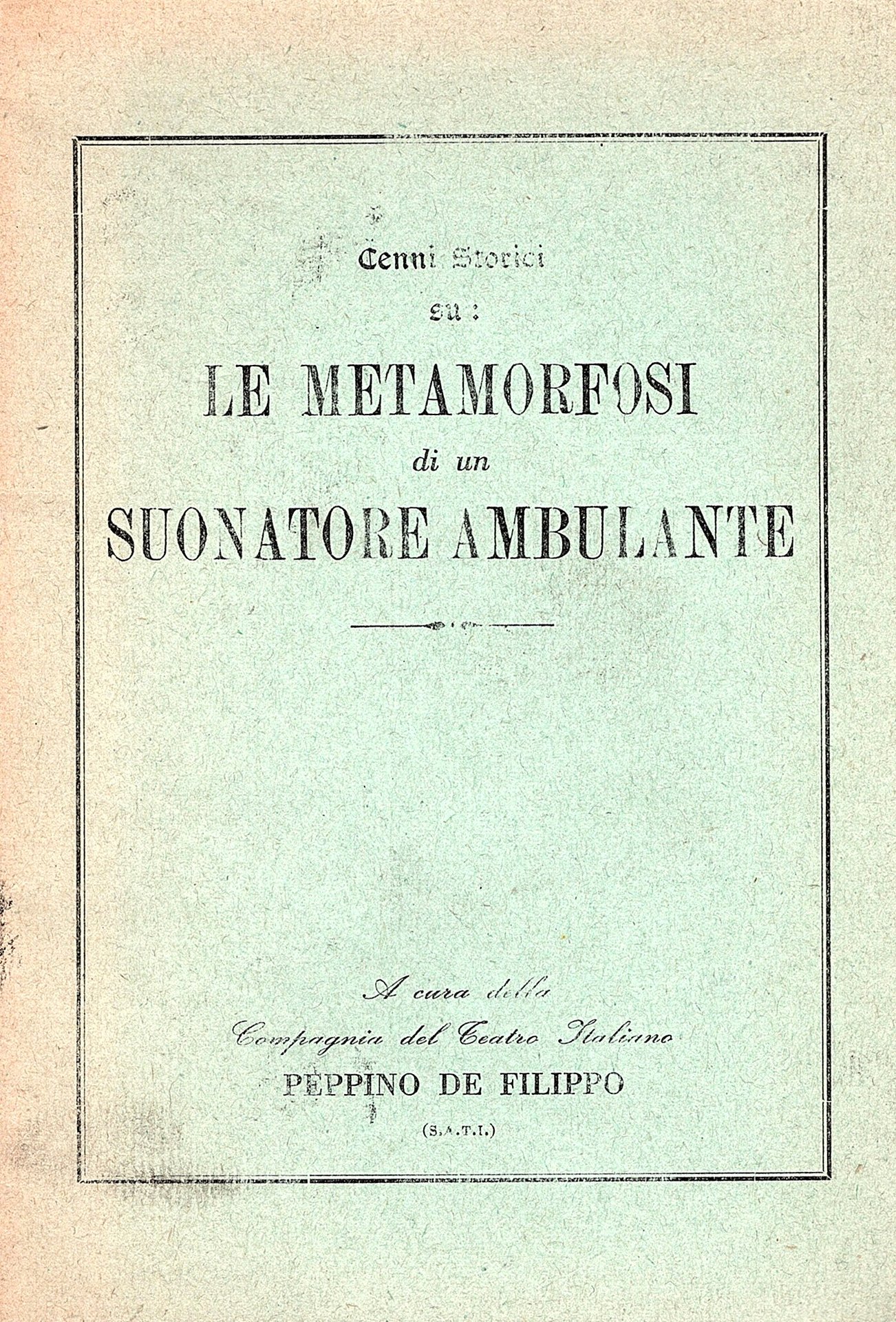 Cenni Storici su Le metamorfosi di un suonatore ambulante di Peppino de Filippo