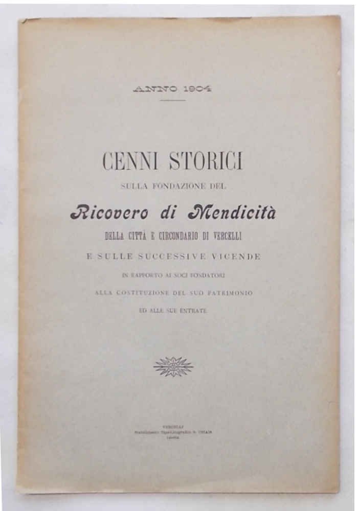 Cenni storici sulla fondazione del Ricovero di Mendicità della Città e circondario di Vercelli e sulle successive vicende…