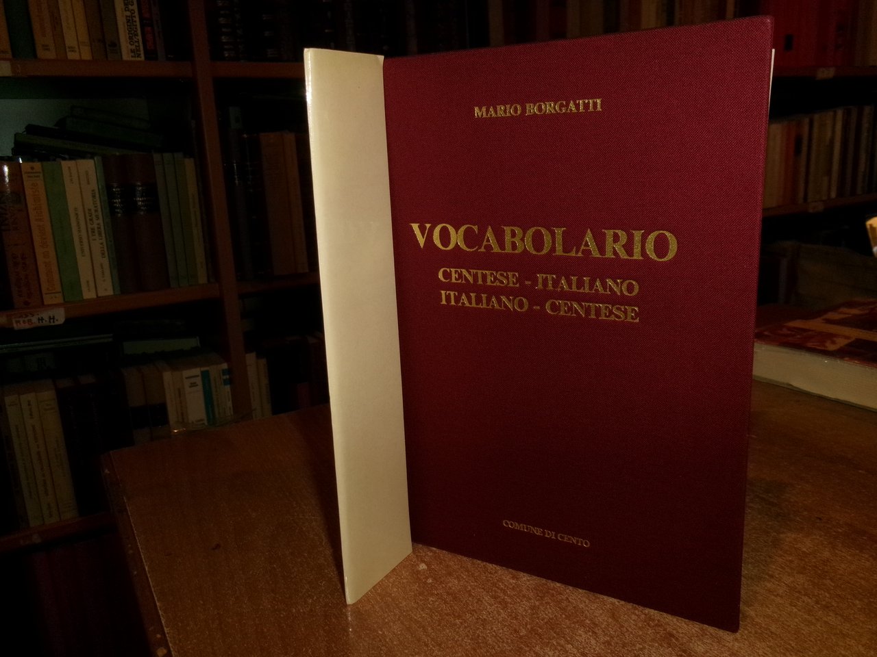 (Cento) MARIO BORGATTI. Cento (Ferrara), Tipolito Baraldi, 1984. Vocabolario CENTESE-ITALIANO ITALIANO-CENTESE. In-8°, tela edit. bordeaux con titoli in oro e sovracopertina. xvi, 269 pp. Ottimo stato. Neg. mob. C