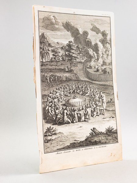 Cérémonies et coutumes religieuses de tous les Peuples du Monde. Lot de 3 planches relatives aux religions des Virginiens et des Indiens de Floride [ Indiens d'Amérique ] : [ Numérotation double pour chaque planche ] 73 / Tome VI N° 7 : Kiwasa idole des Virginiens - Le Dieu des Vents ; 79 / Tome VI N° 12 : Cérémonie par un Roi de Floride - Roi de Floride consultant son Magicien ; 81 / Tome VI N° 14 : Manière d'ensevelier les Rois et Prêtres de la Floride