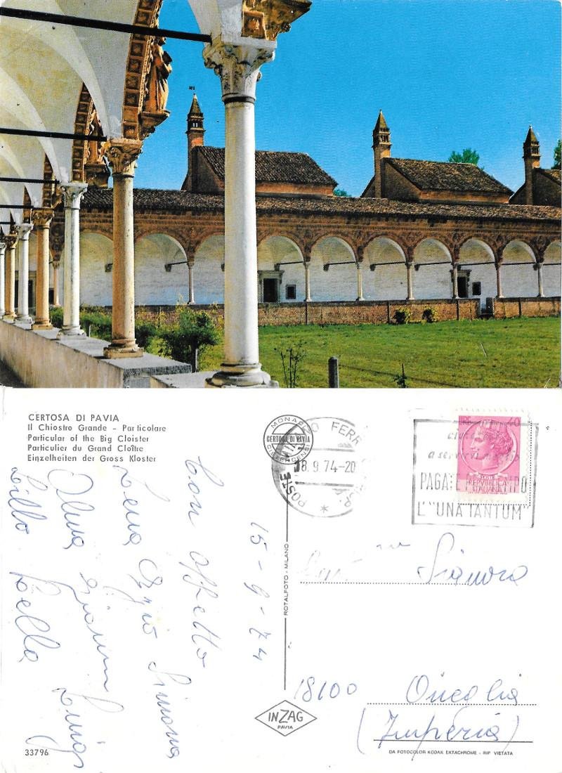 Certosa di Pavia. Il Chiostro Grande. Viaggiata 1974