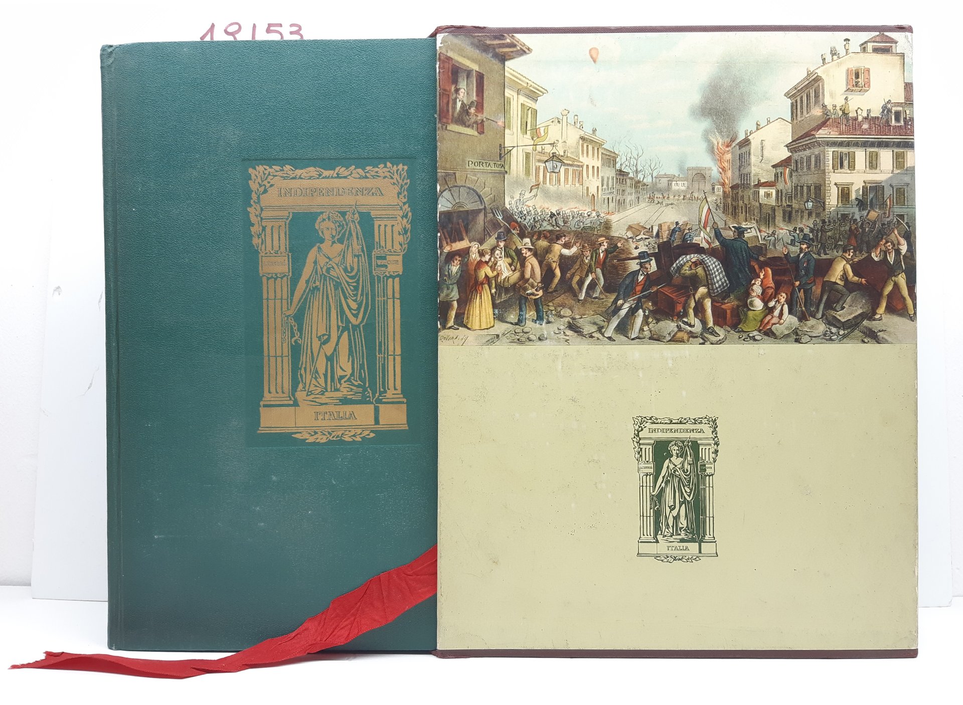 Cofanetto rigido editoriale in discreto stato, alcuni aloni e sporcizie ai piatti e al dorso, una rottura di cm 3,5 al margine superiore, legatura rigida in tela verde con fregio in oro impresso al piatto anteriore e con titolo fregi al dorso, lievissimi segni del tempo, tagli superiori colorati in verde, interno in buono stato, su carta patinata, tagli leggermente ingialliti con qualche fioritura alcune lievissime fioriture alle pagine interne, numero pagine 654 dimensioni cm 32,7 * 26 * 5,5