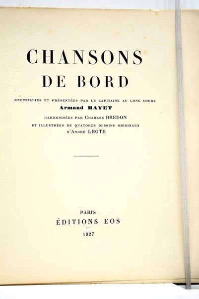 CHANSONS DE BORD. Recueillies et présentées par le capitaine au lon cours Armand Hayet. Harmonisées par Charles Bredon et illustrées de Quatorze dessins originaux d'André Lhote.