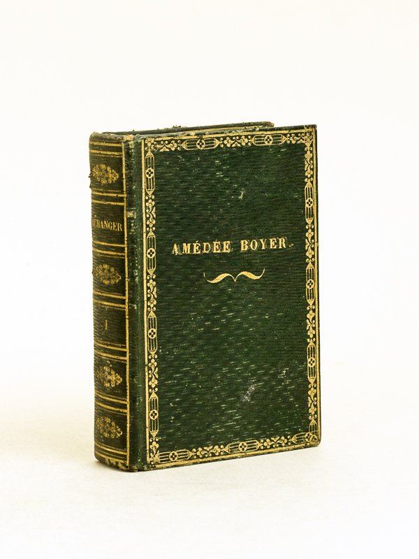 1 vol. in-18 reliure de l'époque plein maroquin vert à grains long, dentelles d'encadrement au plat, mention "Amédée Boyer" au plat sup., toutes tranches dorées, chasses ornées, Baudouin Frères, Paris, 1829, 484 pp. Intéressant exemplaire avec, sur la couverture, le super-libris d'Amédée Boyer. Il s'agit certainement du propriétaire du brevet de "l'eau de mélisse" dite "Eau des Carmes", rachetée à ces derniers en 1838. Etat très satisfaisant (rel. frottée en coupes et mors, qq. rouss., ex-libris Jean Duval)