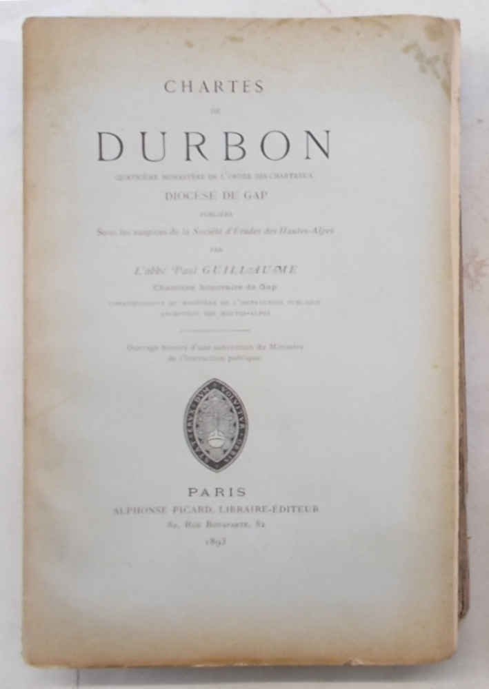 Chartes de Durbon quatrième Monastère de l'Ordre des Charteaux Diocèse de Gap.