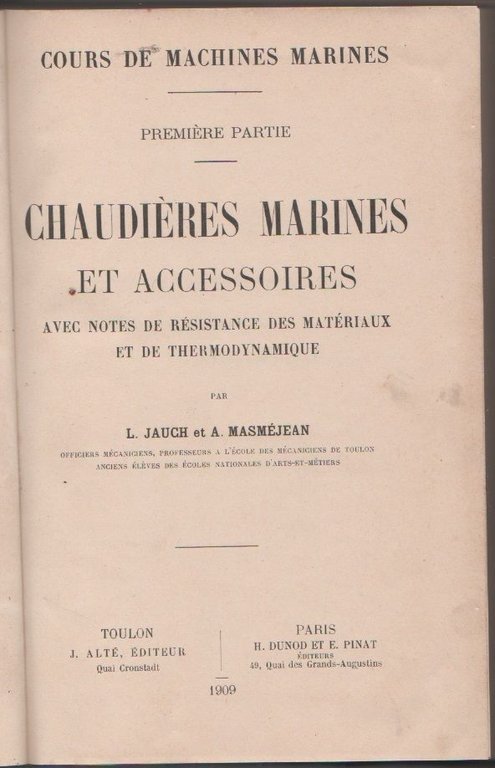 Chaudieres marines et accessoires (I vol) - L. Jauch, A. Masméjean