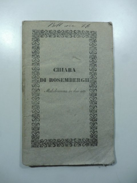 Chiara di Rosembergh. Melodramma in due atti da rappresentarsi nell'I. R. Teatro alla Scala l'autunno dell'anno 1831