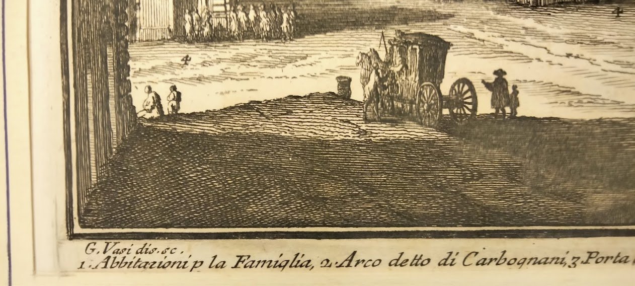 Bella incisione all'acquaforte del 1745-1765. Misura della parte incisa cm 21.5 x 32.
