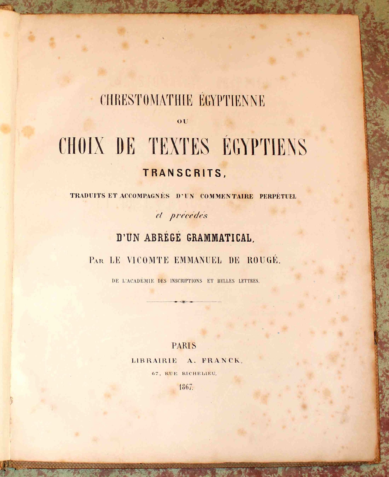 Chrestomathie égyptienne ou Choix de textes égyptiens transcrits, traduits et accompagnés d'un commentaire perpétuel et précédés d'un abrégé grammatical. Première partie. Introduction a l'étude des écritures et de la langue egyptiennes