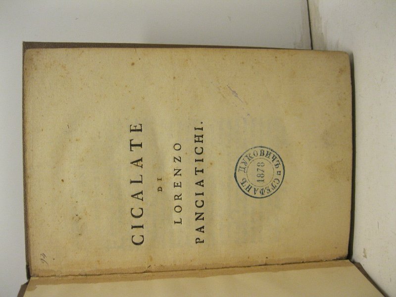In 8, pp. 60 + (5) cc. mss. Timb. di est. bibl. al f. T. tl. mod. Antiche annotazioni mss. ai margg. Cicalata di argomento gastronomico qui per la prima volta pubblicata integralmente (era stata precedentemente pubblicata mutila nella parte III delle prose fiorentine). La seconda e' una controcicalata alla cicalata dell'imperfetto. Le spiegazioni sono del Biscioni. Sono accluse 5 cc. mss. in chiara grafia contenenti una aggiunta alle spiegazioni sulla cicalata; Le stanze del poeta fiorentino Sciarra; Sonetto sopra la peste. Gamba, 2040. B.IN.G., 1424.