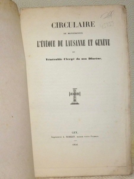 Circulaire de Monseigneur l’évêque de Lausanne et Genève au vénérable clergé de son diocèse.