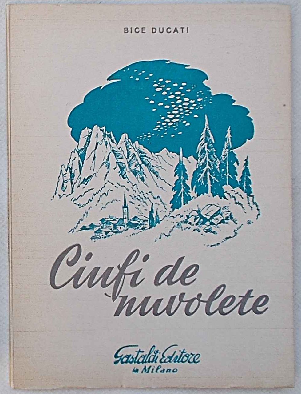 In 8° (cm. 21 x 15,5); pagg. 61; bella leggera cartonatura origin. illustrata a due colori. VG. ** Poesie in dialetto trentino. "Attenta alla tenera suggestione delle cose piccole e care." A Passo Rolle, ricordo de Predaz, en Val de Non, luna mizza no s'empizza.