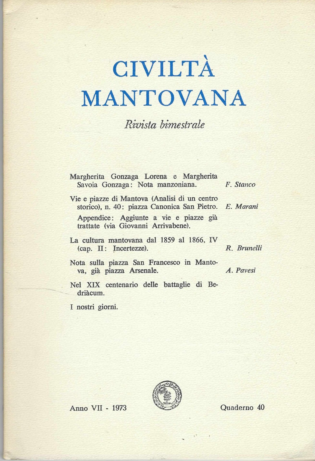 Civiltà mantovana, rivista bimestrale: Anno VII -1973, quaderno 40