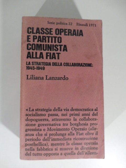 Classe operaia e partito comunista alla Fiat. La strategia della collaborazione 1945-1949