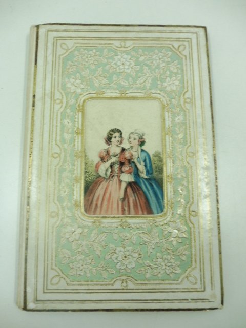 In 8, pp. 138 + (2). Dedica autogr. dell'A. al fr. Bella legatura romantica con fregi oro goffrati ai p. su sfondo bianco e verde e lit. a colori raff. due dame che conversano al p. ant. entro vari ordini di cornici filettate e floreali. Pubblicazione della tesi di procedura civile di quest'avvocato sulla regola della irrevocabilita' delle donazioni.