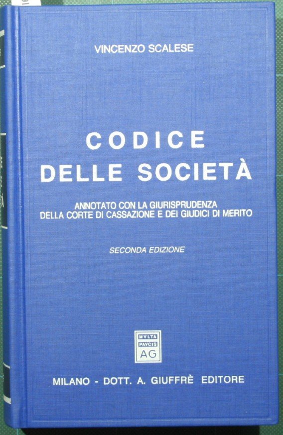Annotato con la giurisprudenza della Corte di cassazione e dei giudici di merito - Seconda edizione - in 8° - pp.IX + 1126 - Tela editoriale