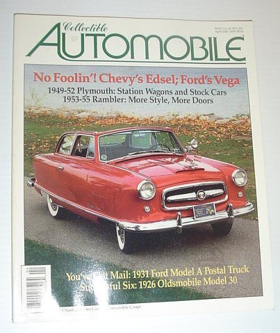 - Collectible Automobile Magazine: April 2000 1949-52 Plymouth, 1971-77 Chevrolet Vega (GM's Edsel), The story of the 1953-55 Nash and Hudson Ramblers, 1926 Oldsmobile Model 30 Four-door sedan, 1953 Ford-Vega Roadster "Gardner Special", Rhys Miller. Magazine Back Issues
