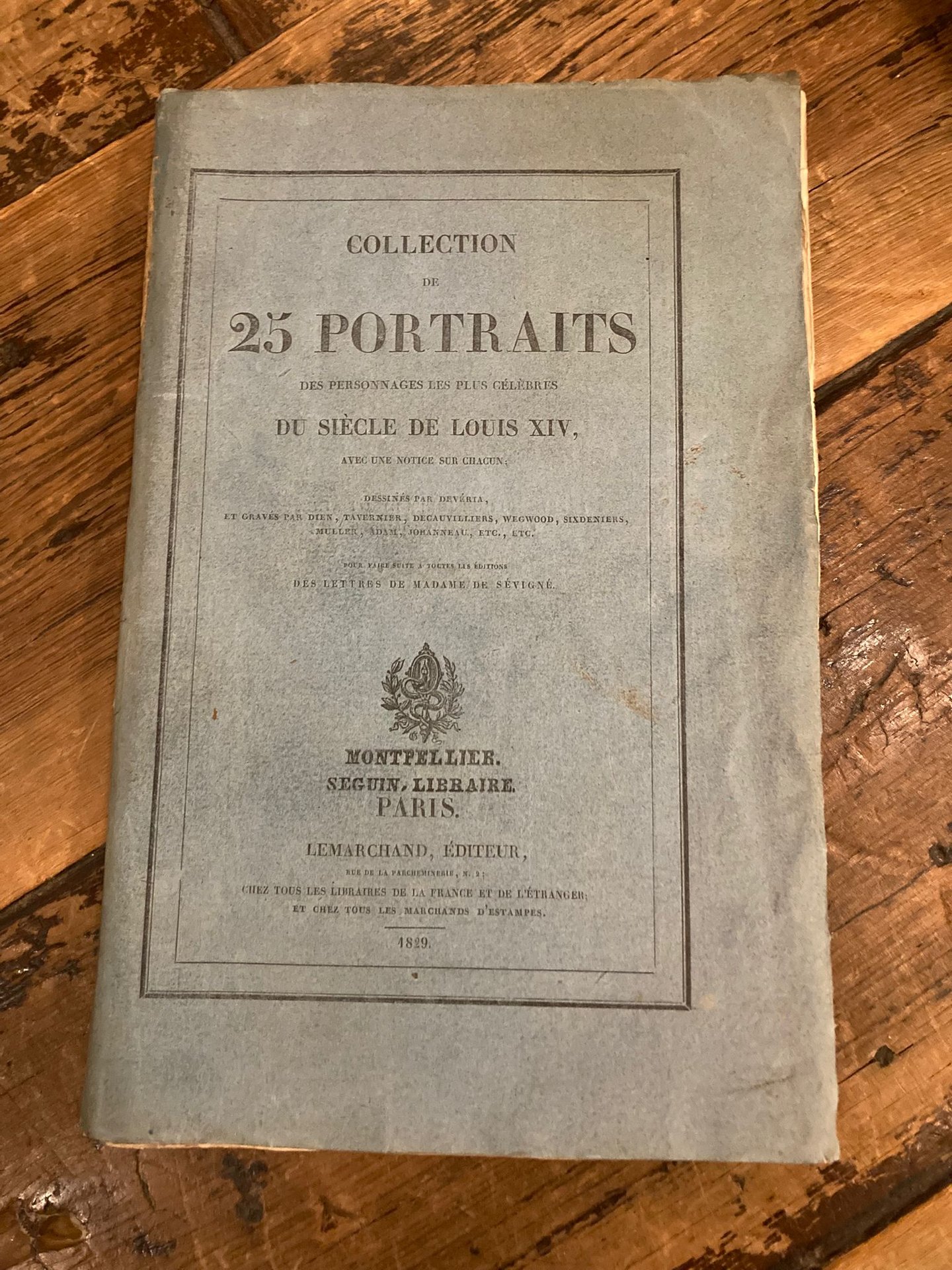 COLLECTION DE 25 PORTRAITS DES PERSONNAGES LES PLUS CELEBRES DU SIECLE DE LOUIS XIV AVEC UNE NOTICE SUR CHACUN; DESSINES PAR DEVERIA, ET GRAVES PAR DIEU, TAVERNIER, DECAUVILLIERS, WEGWOOD, SIXDENIERS, MULLER, ADAM, JOHANNEAU, ETC., ETC.