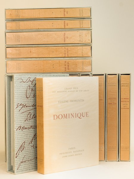Rappel des titres complets : Collection du Grand Prix des Meilleurs Romans du XIXe Siècle (12 Tomes en 15 Volumes - Complet) Paul Bourget : Le Disciple ; Gobineau : Les Pléiades (2 Volumes) ; Balzac : Le Père Goriot (2 Volumes) ; Jules Vallès : L'Enfant ; Fromentin : Dominique ; Flaubert : Madame Bovary ; Zola : Germinal (2 Volumes) ; Benjamin Constant : Adolphe suivi du Cahier Rouge ; Prosper Mérimée : La double méprise suivie des Ames du Purgatoires ; Stendhal : Le Rouge et le Noir (2 Volumes) ; Jules Renard : L'Ecornifleur ; Huysmans : En Route Belle série bien complète. Bon exemplaire (manque le papier cristal de protection sur un volume Zola, papier cristal de protection passé, qq. rouss. et qq. frott. sur étuis)