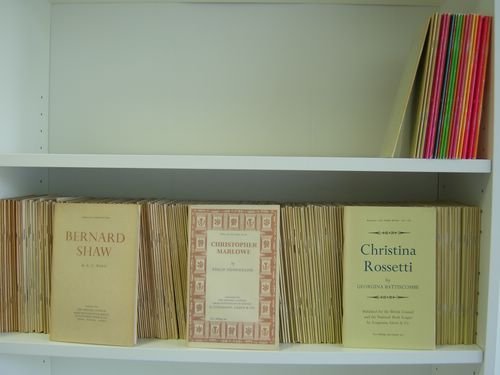 Collection "Writers and their Works" from number 1 through number 236 : Francis Bacon ; Beaumont & Fletcher ; Richard Hooker ; Marlowe ; Skelton ; Bunyan ; Congreve ; Dryden ; Milton ; Herrick ; Webster ; Defoe ; Gray ; Hume ; Sheridan ; Smollett ; Swift ; Bagehot ; Coleridge ; Disraeli ; Gissing ; Hardy ; Hazlitt , Peacock ; Ruskin ; Shelley ; Swinburne ; Chesterton ; Madox Ford ; Fry ; Joyce ; Lewis ; Masefield ; Moore ; Priestley ; Wesker, etc. etc.
