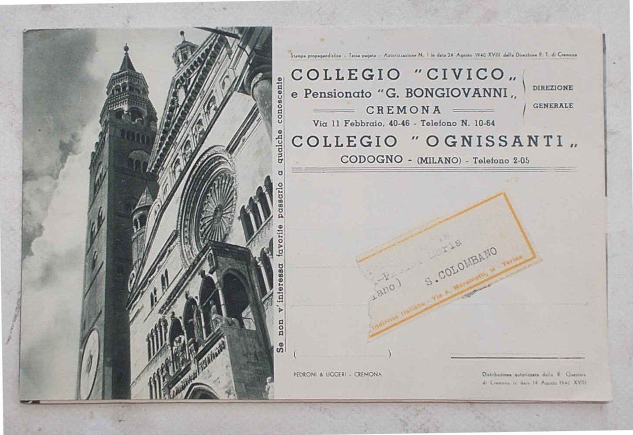 Collegio civico e pensionato "G. Bongiovanni" Cremona. - Collegio "Ognissanti" Codogno.