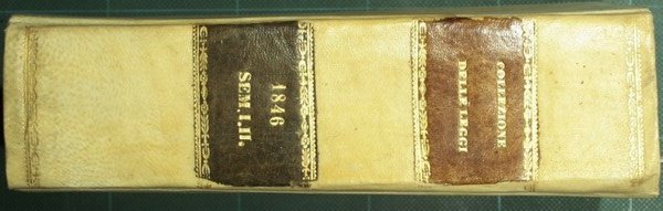 Semestre I - Da gennajo a tutto giugno; Semestre II - Da luglio a tutto dicembre - in 8° - pp.XLIII + 333 + XIV; XLIX + 243 + XIV - Piena pergamena, tasselli in pelle al dorso con titolo e fregi in oro - Due volumi in un tomo