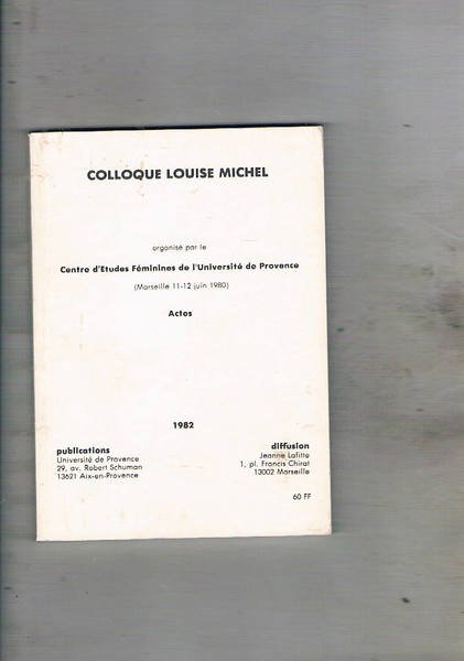 Colloque Louis Michel organisè par le Centre d'Etude Féminies de l'Université de Provence (Marseille 11-12 Juin 1980) actes.