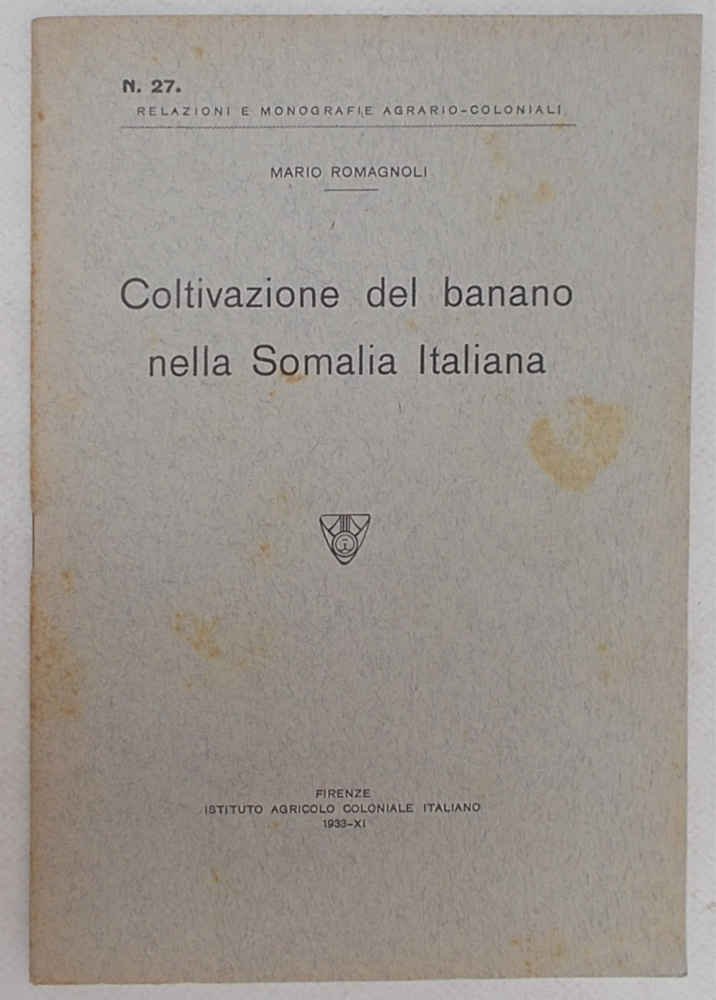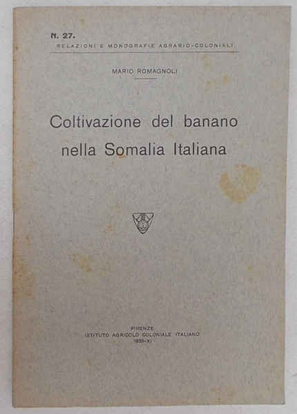 In 8° (cm. 24 x 16,5); pagg. 26; con 1 tavola f.t. ed alcune illustrazioni n.t.; leggera cartonatura originale. VG. ** Relazioni e Monografie Agrario-Coloniali, N. 27.