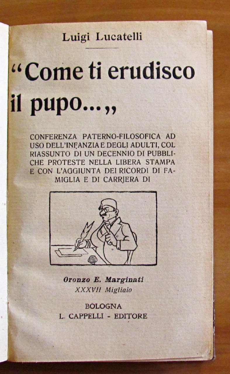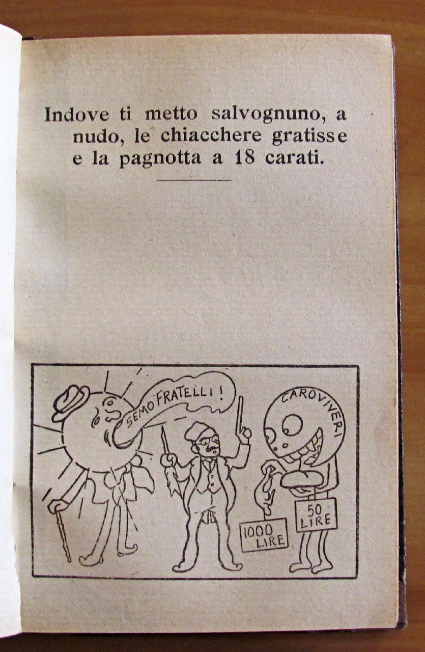 Illustrazioni umoristiche in b/n n.t. e illustrazione dell'autore in antiporta. Editore L. Cappelli - Bologna, 1922. Rilegatura coeva in mezza tela con copertina in brossura originale conservata all'interno. 12,5x19; pp.221. BUONISSIMO STATO , Molto buono (Very Good)