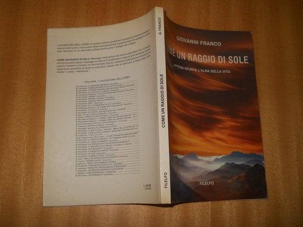 GIOVANNI FRANCO, come un raggio di sole. appena spunta l'alba della vita - Filelfo, 1987 - copertina morbida, formato cm. 14,5 x 21, pag. 124 - pari a nuovo se non fosse per piccolissime fioriture marroncino su bordo esterno superiore delle pagine e timbro biblioteca su pagina risguardo, ovviamente senza sottolineature o altro di simile