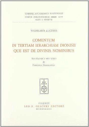 COMENTUM IN TERTIAM IERARCHIAM DIONISII QUE EST DE DIVINIS NOMINIBUS