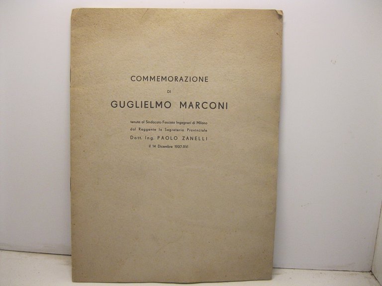 Commemorazione di Guglielmo Marconi tenuta al sindacato fascista Ingegneri di Milano. il 14 dicembre 1937