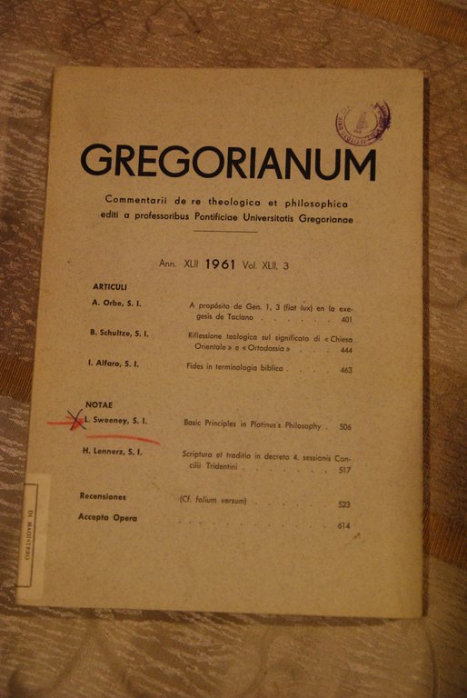 gregorianum commentarii de re theologica et philosophica xlii vol. xlii, 3. 1961 .