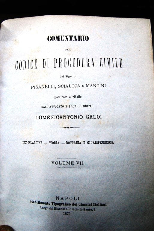 Commentario del codice di procedura civile dei signori pisanelli scajola mancini ? volume VII