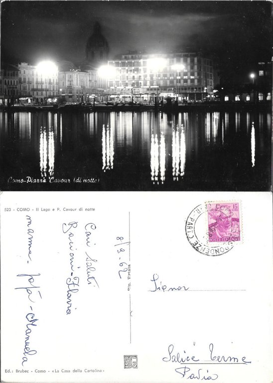 Como Piazza. Cavour di notte. Viaggiata 1962