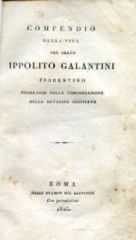 Compendio della vita del Beato Ippolito Galantini fiorentino fondatore della Congregazione della Dottrina Cristiana