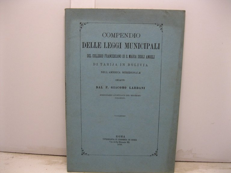 Compendio delle leggi municipali del Collegio Francescano di S. Maria degli Angeli di Tarija in Bolivia nell'America meridionale redatto dal missionario apostolico del medesimo collegio