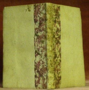 Bande de papier marbré collée au dos.