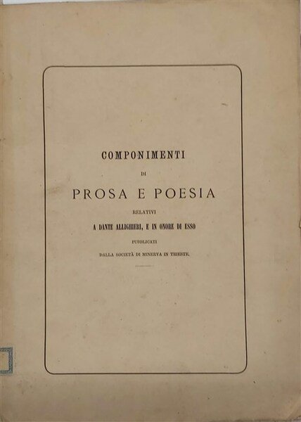 COMPONIMENTI DI PROSA E POESIA relativi a Dante Alighieri, e in onore di esso pubblicati dalla Società di Minerva in Trieste.