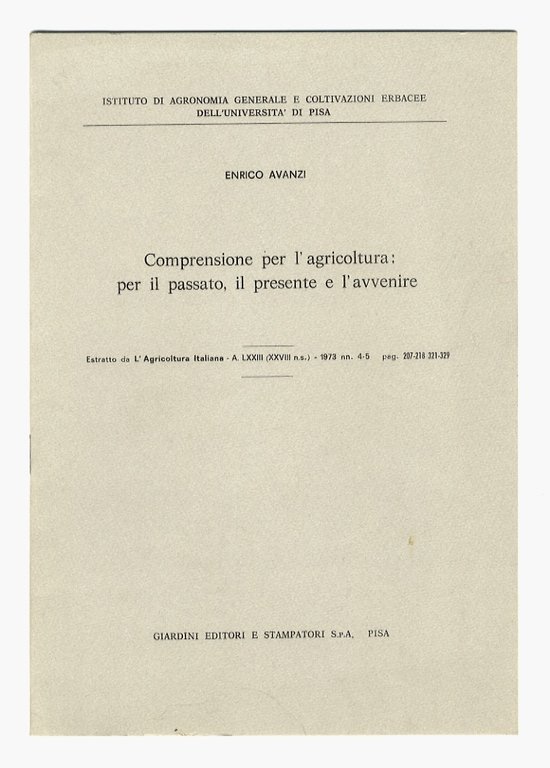 Comprensione per l'agricoltura: per il passato, il presente e l'avvenire. Estratto de l'Agricoltura italiana [.].