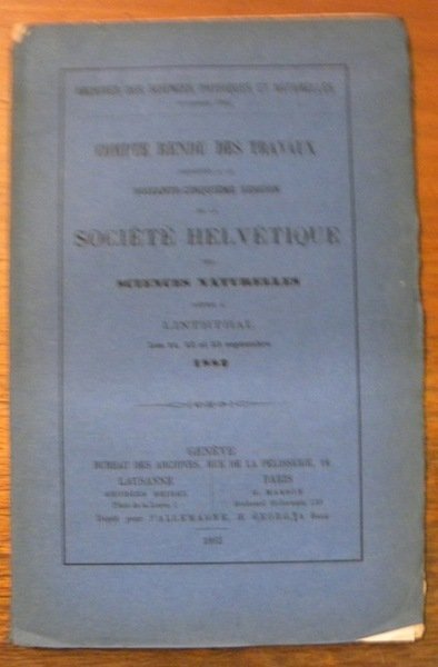 Compte rendu des travaux présentés à la Soixante-Quatrième Session de la Société Helvétique des Sciences Naturelles réunie à Linththal les 11, 12 et 13 septembre 1882. “Archives des Sciences Physiques et Naturelles, Novembre 1882.”