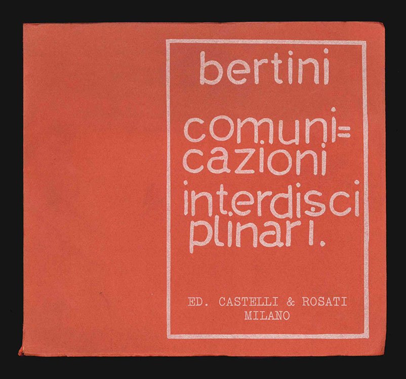 LIBRO Prima edizione. Ottimo esemplare, una delle 1200 copie, senza numero. Libro d’artista stampato in 1200 copie numerate l’anno dopo una mostra tenuta a Milano, di cui scrive Bertini: «Queste comunicazioni interdisciplinari relatano una manifestazione-spettacolo che ho presentato per la prima volta a partire dal 26 gennaio 1971 allo studio Santandrea di Milano. Le immagini [.] sono l’essenza immateriale dei miei quadri, il fondo elettivo su cui intesso il mio discorso pittorico. [.] Da tre proiettori sono proiettati sul muro tre diversi gruppi di immagini: a sinistra immagini «sesso», a destra immagini «vita», al centro delle frasi o dei grafismi. [.] rimangono visibili sul muro un certo tempo [.]. Poiché i tempi di proiezione sono leggermente sfalzati [sic], l’immagine che si ricompone sul muro [.] si presenta con una infinità di varianti. In questa pubblicazione sono documentate delle sequenze riprese durante la prima manifestazione».