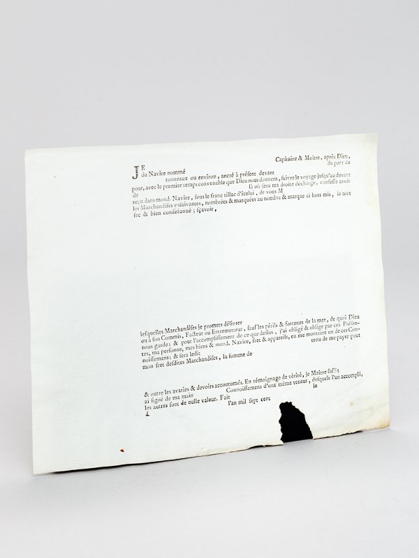 1 pièce imprimée in-8 oblong s.d. (XVIIIe siècle) Peu courant. Etat très satisfaisant (mq. en queue sans atteinte au texte)
