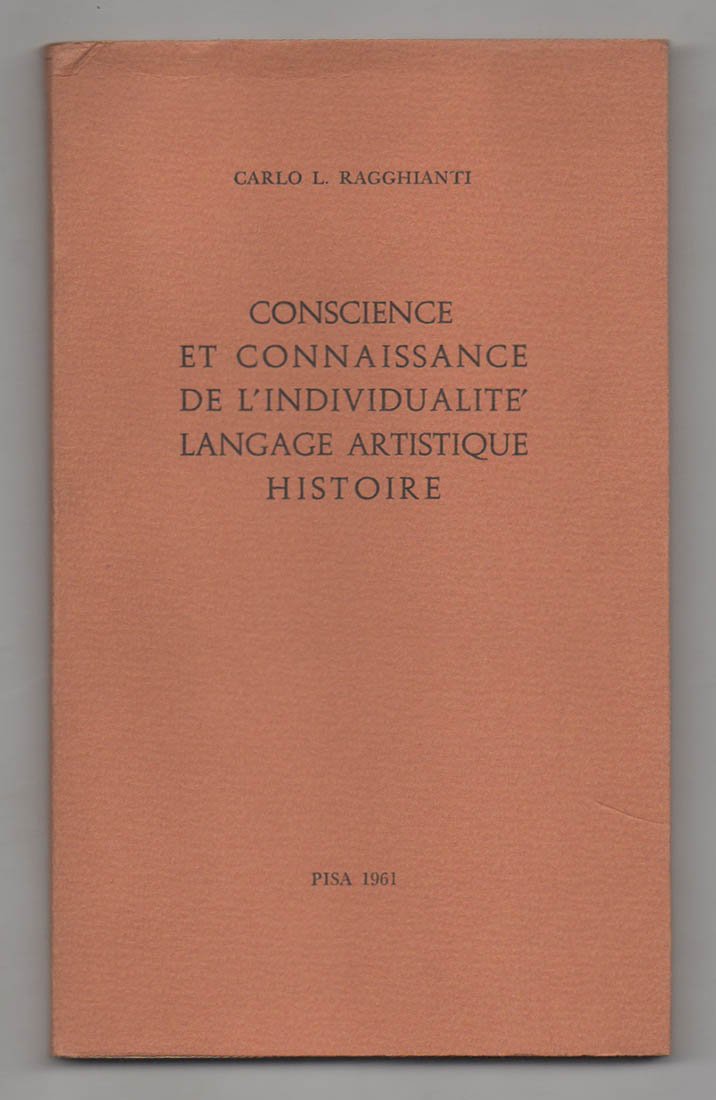 LIBROPrima edizione.Ottimo esemplare.Breve studio in francese sull’evoluzione del ruolo dell’individualità dell’artista nell’arte, con riferimenti al mondo antico e moderno. Stampato in occasione del cinquantesimo compleanno di Ragghianti, una breve nota in coda al saggio ci informa che il testo «reproduit une communication envoyée par l’auteur à m. Hans Kohn pour le congrès de l’«international society of history of ideas» (Cambridge, 30 aoüt - 4 septrembre 1960)».