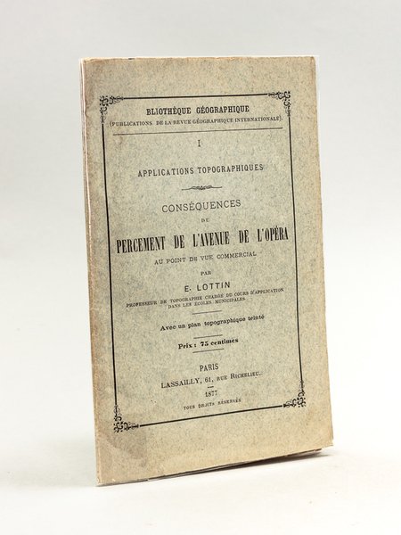 Avec un plan topographique teinté, 1 brochure in-12, coll. Bibliothèque Géographique, Applications topographiques , Lassailly, Paris, 1877, 35 pp. avec un plan dépliant Bel exemplaire de cette intéressante brochure, ornée d'un beau plan teinté. Peu commun.